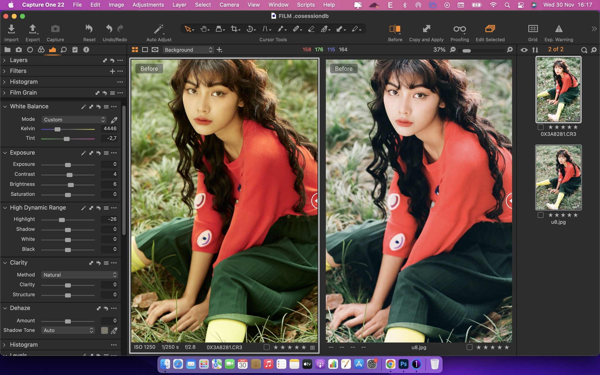Hãy cùng so sánh hai ảnh được chụp bằng máy film và máy kỹ thuật số Canon EOS R6. File trên máy Canon đã được setup màu sắc trên Picture Style và Shift WB… đã cho kết quả khá ấn tượng. Sau đó sử dụng phần mềm chỉnh sửa ảnh Capture One để điều chỉnh màu sắc